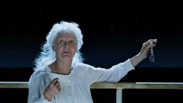 Sada vidimo kako je Kameron probao da završi film - Rouz se penje na palubu, ali je unuka i posada tragača zadržava, u strahu da će skočiti. Tada vide ogrlicu...