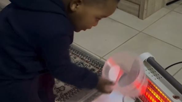 Na Instagramu je osvanuo snimak koji je objavljen uz opis: "Moja mama je rekla da joj je hladno, i sad brat pokušava da je zagreje", na kojem vidimo kako jedan mališan "hvata toplotu" u kanticu pored grejalice, a potom trči do mame i "posipa toplo" po njoj.