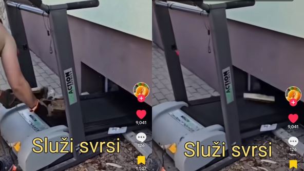 On se setio da mu u sobi stoji traka za trčanje koju ne koristi, i to je bilo dovoljno da spravu za vežbanje iskoristi tako da mu bude "desna ruka" prilikom pakovanja drva.