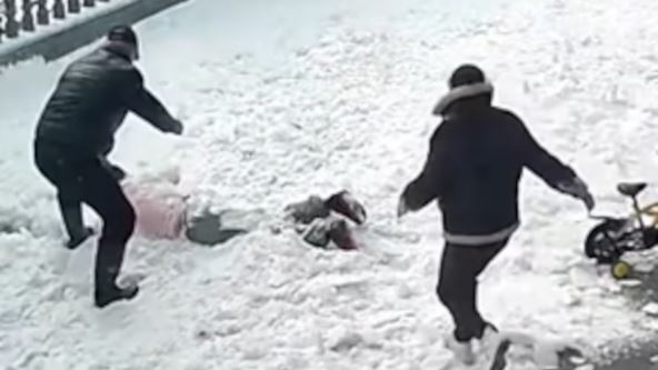 Na njemu se može videti žena koja vredno čisti sneg iz svog dvorišta, sve dok se ne desi ovo! Pogledajte: