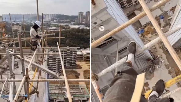 Nepoznati muškarac je objavio snimak radnika koji pričvršćuje skelu na neboderu, a pogled je "da se zamrznes".