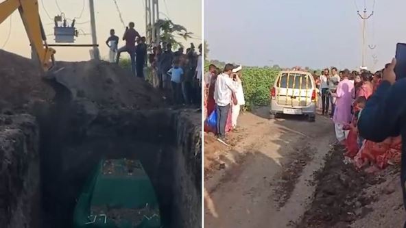 Za ceremoniju, porodica je iskopala rupu duboku 4,5 metara na svom imanju, a automobil je pažljivo spušten niz improvizovanu "grobnicu". Vozilo je bilo prekriveno laticama cveća i ukrašeno šarenim girlandama, dok je muzika svirala sa prenosnih zvučnika. Nakon toga, automobil je prekriven zelenim platnom, a porodica je izvela nekoliko tradicionalnih indijskih rituala vezanih za sahranu.