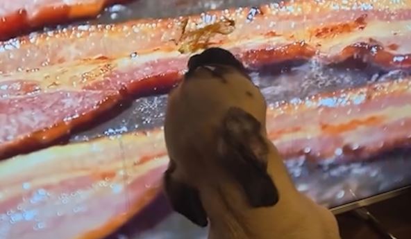 Francuski buldog sa snimka je postao hit na društvenim mrežama kada je video slaninu i čuo crvčanje u tiganju, a snimak je pregledan preko 900.000 puta.