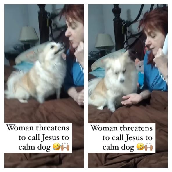 U trenutku kad je izgovorila ime pas se umirio, seo na krevet i pokušavao da se umiljava vlasnici, koja je sve vreme bila na telefonu imitirajući da priča sa Isusom.