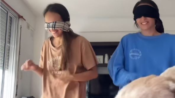 Kako bi prikupile pažnju pratioca na društvenim mrežama, dve devojke su stavile poveze preko očiju i zaplesale dok su se snimale. Nisu ni slutile da će glavna zvezda snimka biti zapravo psić, koji je odlučio da je ovo njegova šansa da se dočepa hrane sa stola.