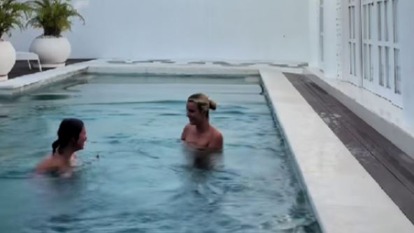 Dok su se bezbrižno baškarile u bazenu svog smeštaja i uživale, otvorila su se vrata i iz jedne od susednih soba izašao je još jedan gost vile. Devojke su se isprva šokirale, a zatim nasmejale kad su shvatile što se zapravo događa, i da nisu same, a on ih je nonšalantno pitao odakle su.