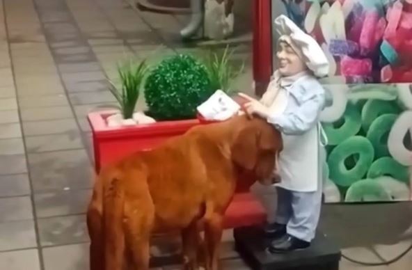 Pas koji je bio toliko željan bilo kakve pažnje, da ga neko pogleda, da ga pomazi, na kraju se "snašao" za češkanje iskoristivši pokretnu reklamu kuvara kom se pomerala ruka.