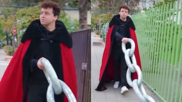On je na ulicu izašao ogrnut plaštom, dok je u ruci držao ogroman lanac. U prvi mah se nije videlo kakva "zver" je na kraju povoca, a ljudi su ga radoznalo zagledali.