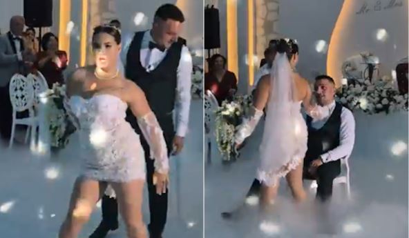 Mladoženja je prvo radio sklekove, dok je mlada, u kratkoj venčanici plesala i uvijala se, potom je seo na stolicu, a ona njemu u krilo... dok su svatovi navijali.