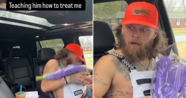 I dok je zbunjeni momak gledao šta ga je snašlo, devojka je već izašla iz automobila, a potom je ponovo ušla i "oduševila" se cvećem.