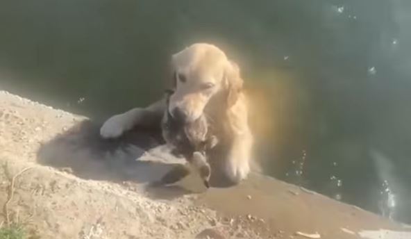 Njen pas bio je ubeđen da se patka davi, a iako vlasnica u prvi mah nije ni videla šta njen retriver nosi u ustima, čim je ptičicu ostavio na "sigurnom", počela je da se smeje.