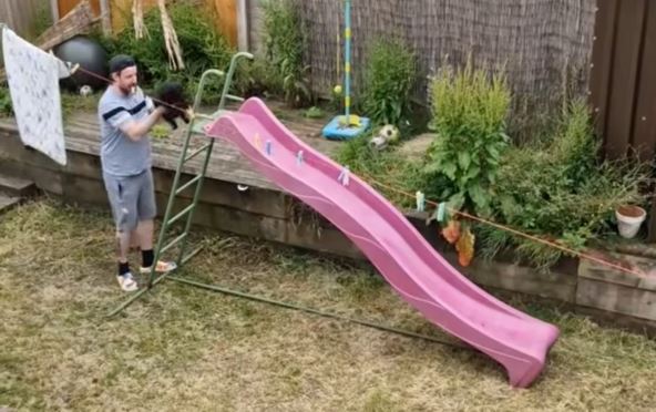 On je njihovog malog crnog psa spuštao niz tobogan, a onda mu je ljubimac oduševljeno ponovo dotrčao kako bi ponovili sve.