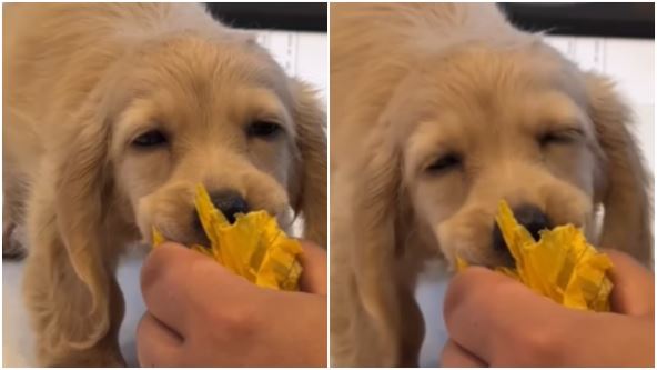U snimku koji je za svega nekoliko sati sakupio preko 60.000 lajkova, štene drži žuti papir u ustima i pokušava da podstakne igru, ali mu se oči same od sebe sklapaju. Iako mu san očigledno nadjačava želju za igrom, njegova upornost raznežili su pratioce širom sveta.