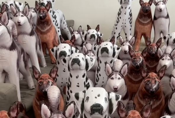 Razlog je taj što se na videu nalazi stotinak naduvanih gumenih kučića, a pravi pas, haski, kao da ne postoji.
