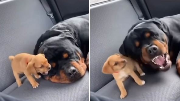Poznato je da su manje kuce u većini slučajeva hrabrije i veće prznice, a ponekad nisu svesne na koga kreću, što je bio slučaj i sa žutim štenetom koje je razbudilo "uspavanu zver"- rotvajlera.