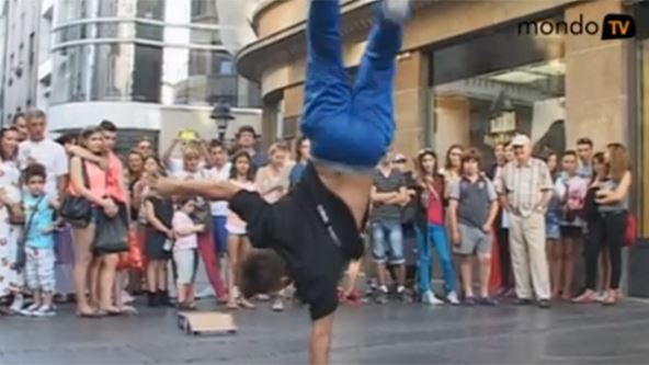 Vrtenje na glavi je je svima prva asocijacija na brejkdens, iako su nas momci ispravili da se ono što oni izvode zapravo zove bibojing ili brejking, i to je obavezan deo njihovih nastupa.
