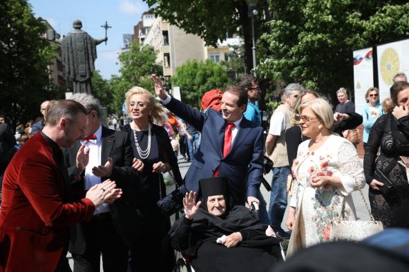 Prvi isped hrama stigao je mladin otac Dragomir, koji je oko sebe okupio trubače i častio ih sa hiljadu evra. On je obukao klasično odelo, sa belom košuljom, a svima je zapelo za oko njegova leptir mašna u bojama srpske trobojke. Stigla je i mama Hafa, kao i rođeni brat Simon.