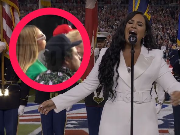Velika prašina se digla kada je slavni par presedeo izvođenje američke himne od strane Demi Lovato.