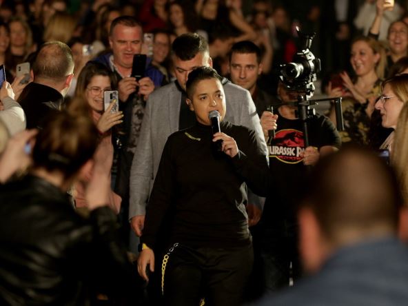 Nakon što su joj se momci pridružili na sceni zamolila ih je da pozovu svoje devojke koje su im se ubrzo pridružile. Prave ovacije i veliku podršku publike Marija je dobila kada je stavila lentu i parovima se obratila u službi matičara.