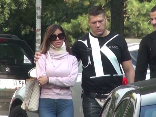 Iako je pevač samo dan kasnije uslikan kako ide na trening, ekipa "Paparaco lova" je snimila njegovu verenicu s kragnom.