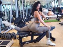 U uskim roze helankama, se spustila na kolena, guzu okrenula ka kameri počela da vežba i tverkuje.