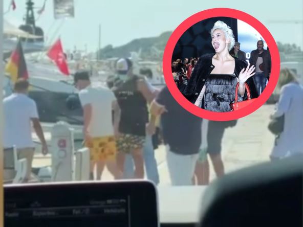 Kada je stigla na Ibicu, iz automobila u kom se nalazila je usnimila navodno fudbalere Mesija i Suareza, koji su se nalazili ispred jahte.