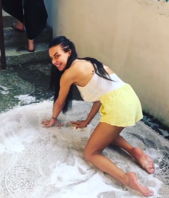 Sada je pokazala sa kolikim samo žarom obavlja kućne poslove. Ručno je ribala tepih, nasleđen od svoje nane, a oko nje se okupio ceo komšiluk!