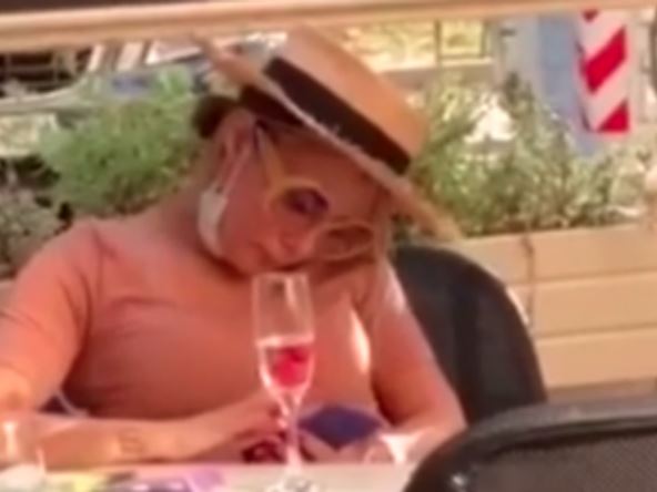 Ana je došla u kafić sama i bila je vidno neraspoložena, s maskom na bradi, a podočnjake i pospanost je pokušala da zakamuflira velikim sunčanim naočarima. Nosila je i šešir velikog oboda, koji joj je sakrio pola lica.