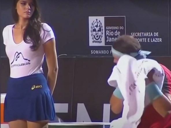 Sakupljačica lopti u plavom miniću je toliko zaintrigirala tenisera, da bi neprestano zurio u nju, što su kamermani Rio Opena itekako primetili.