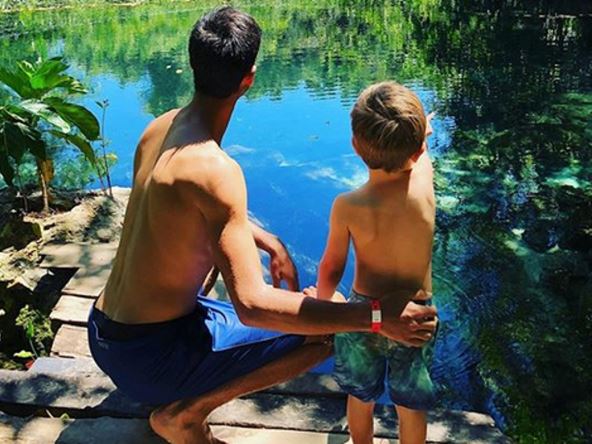 Na slici pored emotivne objave vidimo svetskog broja 1 i malog Stefana u kupaćim kostimima na obali jezera.
