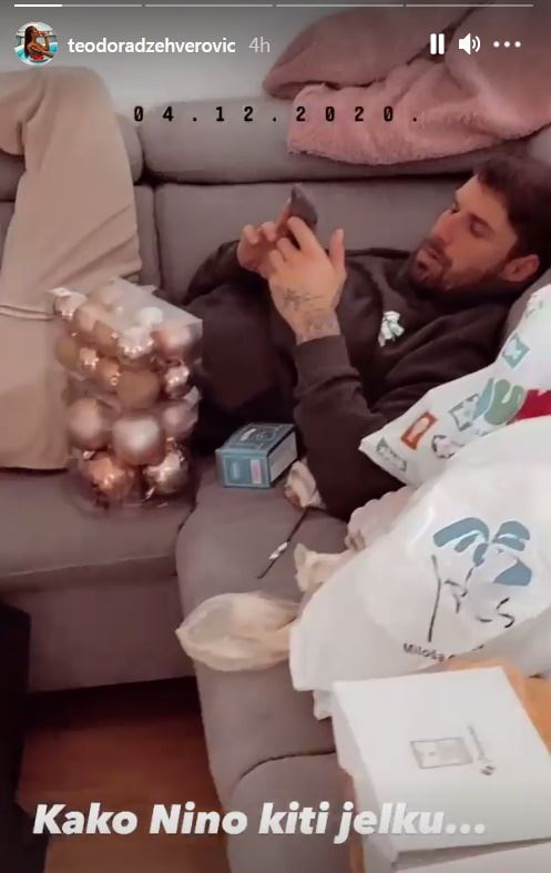 Pevačica Teodora Džehverović objavila je na Instagramu video u kojem je pokazala kako njen dečko Nino Čelebić kiti jelku.