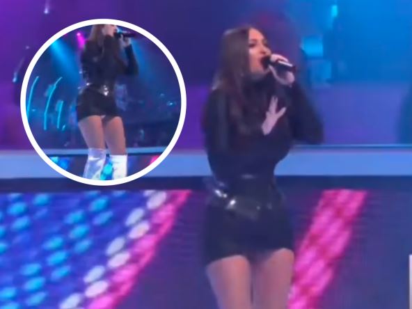 Mlada pevačica se pojavila u prekratkoj crnoj haljini koja nije mnogo toga sakrila, te je takmičarka nekoliko puta na sceni "sevnula".