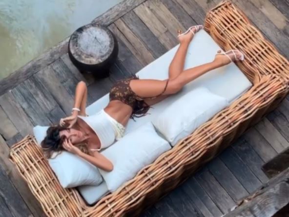 Ona je objavila nekoliko vrućih snimaka odozgo, dok je na sebi imala samo maleni top i maramu koja je jedva prekrila njenu guzu.