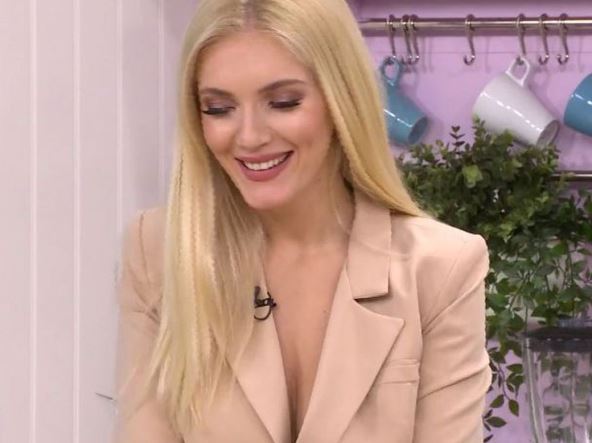 U emisiju "Praktična žena" na TV Prva došla je u krem odelu, a sako je bio prilično otvoren, pa je konstantno skretao pažnju sa onoga što je pevačica pripremala.