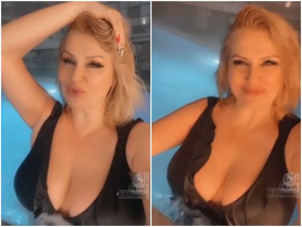 Ovog puta otišla je na Kopaonik, pa se snimila dok uživa u otvorenom bazenu. Bujni dekolte bio je u prvom planu, a ova izazovna apotekarka obratila se svima:
