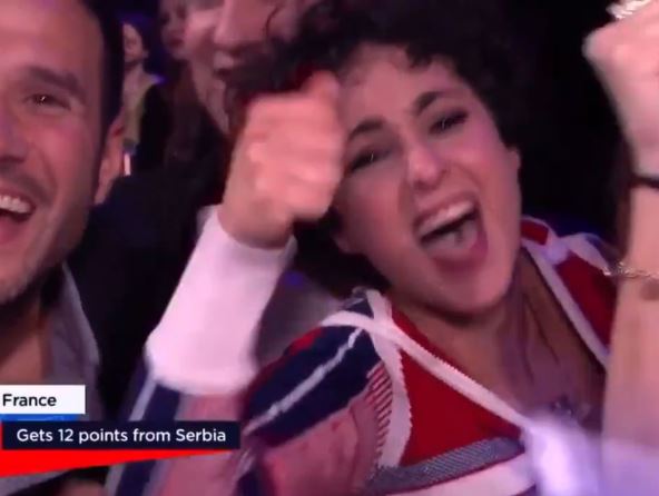 U trenutku kada je saopšteno da 12 poena dobija Francuska, Barbara nije krila oduševljenje pred kamerama, pa je na srpskom vikala: "Deda, deda!".