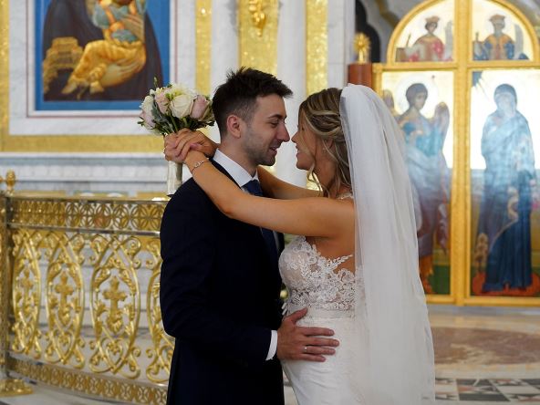 Venčali su se u Hramu Svetog Save u prisustvu najbližih, a mlada je blistala u beloj venčanici, dok je mladoženja bio u tamnom odelu.