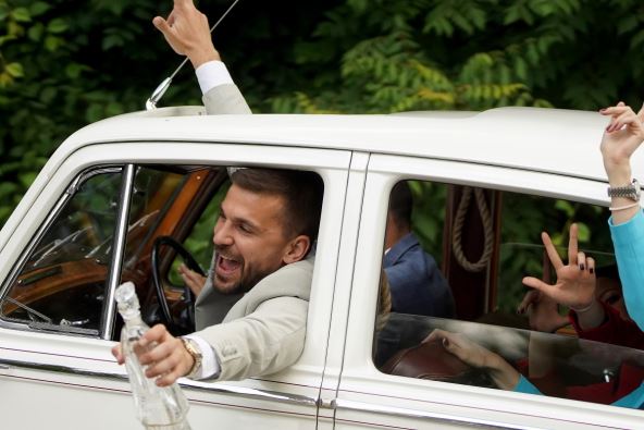 Aleksandar Mitrović je došao oldtajmerom na proslavu venčanja i sve vreme držao flašu u ruci i nazdravljao, dok je drugom rukom pokazivao tri prsta!
