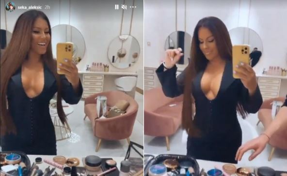 Pevačica Seka Aleksić nastupila je na jednom prestoničkom splavu, a pre nego što je izašla pred publiku snimala se u šminkernici.