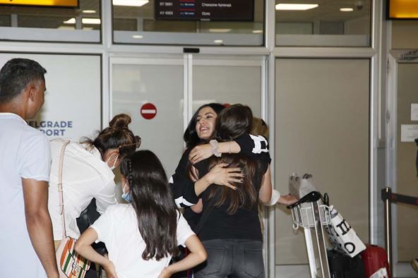 Pevačica Tanja Savić danas je sa sinovima Đorđem i Maksimom doputovala u Srbiju, a dočekali su ih članovi Tanjine porodice.
