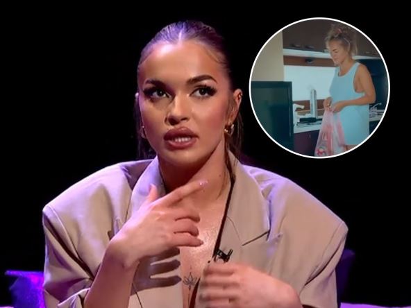 Nesređena i bez trukne šminke, Džehverovićeva je sređivala stan, držeći kesu za đubre u rukama.
