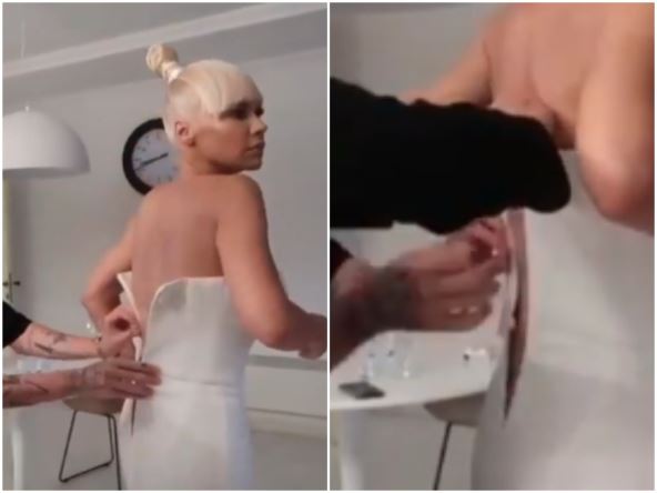 Pred sam izlazak na binu Natašina sestra Kristina Bekvalac htela je da joj zategne haljinu, kada je ona pukla i rasparala se duž leđa.