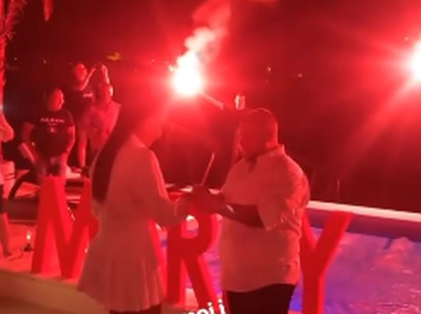 Prizor kraj bazena bio je veličanstven, ispred je stajalo velikim slovima "Marry me", a buduća gospođa Trajković je ostala bez teksta.