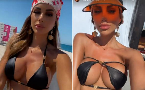 Iva se snimala na plaži u crnom gornjem delu kupaćeg kostima, nakon čega je rešila da ga "zapetlja".