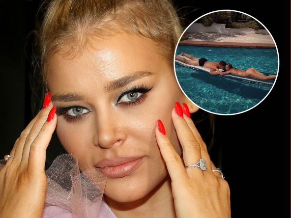 Sofija i Luka pozirali su u bazenu, a sa manekenkine vitke figure retko ko je uspeo da skrene pogled.