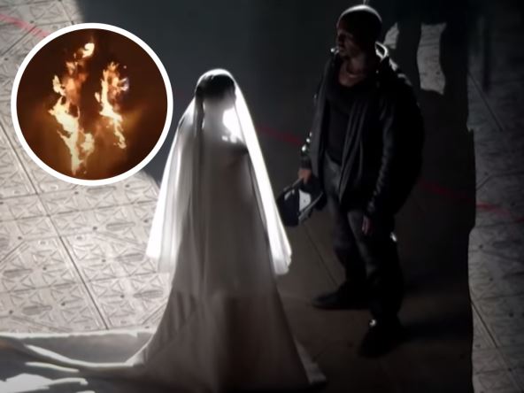 On se na bini u Čikagu pred 40.000 ljudi zapalio i u plamenu prošetao nekoliko koraka setom koji je ličio na njegovu porodičnu kuću u kojoj je odrastao i gde je živela njegova majka Donda.