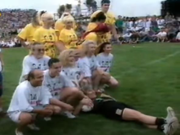 Fudbalsko umeće pokazao je i pokojni Džej koji je tada imao više kose. Prepoznatljivi osmeh i plava kosa oduvek su krasili Lepu Brenu.Još jedna pevačica činila je tim "belih" - Mira Škorić.