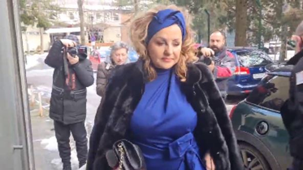 Pevačica je na poslednje snimanje stigla u kraljevsko plavoj kombinaciji, preko koje je nosila crnu, skupocenu bundu, dok se trudila da u studio uđe sa osmehom na licu.