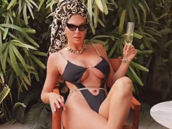 Nakon snimka vruće akcije na plaži, Karleuša je pozirala u kupaćem kostimu koji je optočen kristalima, kao i svetlucavi kombinezon.