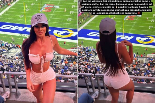 "Nikada se nisam obratila onima koji me pokušavaju uništiti, koji me vređaju, koji mi podmeću smicalice kakve samo u serijama vidite, koji me mrze, kojima se kosa na glavi diže od mene - znate šta, je*ite se. Pozdrav sa Superbola u očajnom autfitu, sa mnoštvom Fotošopa i još jednom, je*ite se, a idući post - kokoške na aparatima".